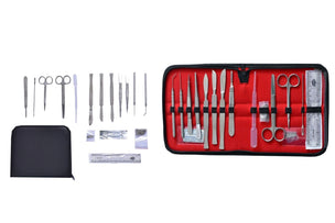 – contains below in a zipped pouch : Needle holder Mosquito forcep Iris scissor Adson forcep Scalpel blade no 3 2 sca...