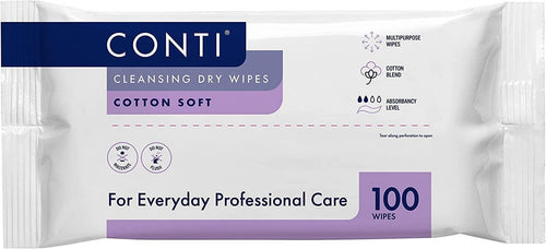 Conti So Soft Large Patient Cleansing Dry Wipes provide highly effective cleansing using a heavier material with added cotton creating a wipe that is soft yet durable.